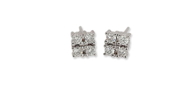 Pendientes forma cuadrada con 8 diamanes en pavé
