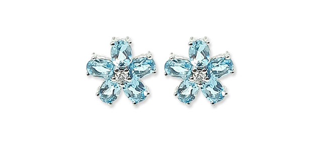 Pendientes Pétalos grande con berilo aguamarina natural y brillante
