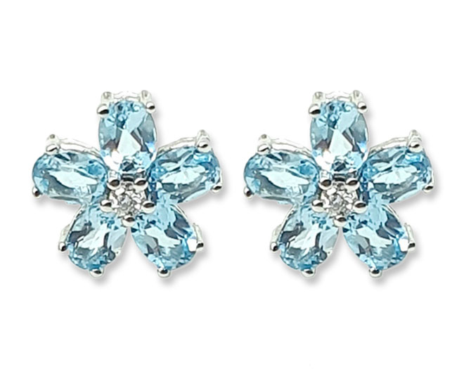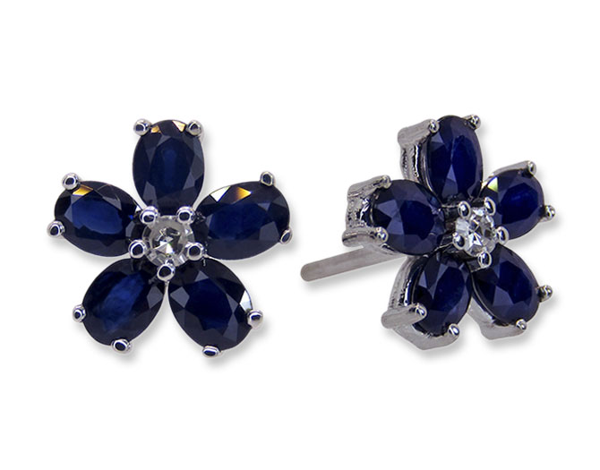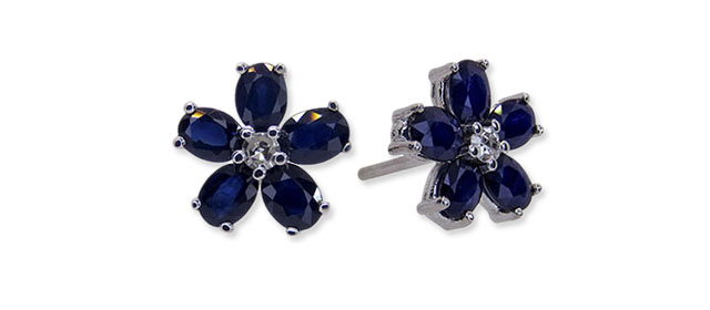Pendientes Pétalos con corindón Zafiro natural 4x3mm y brillante en cada flor