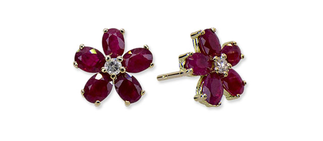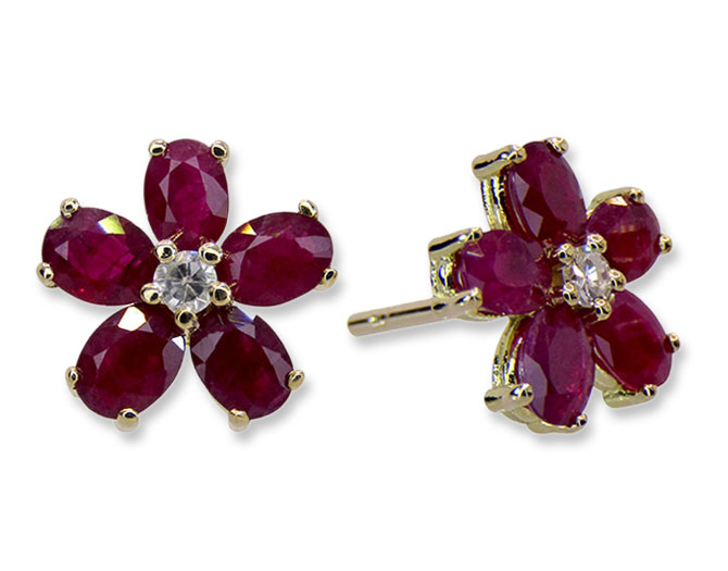 Pendientes Pétalos con corindón Rubí natural 4x3mm y brillante en cada flor