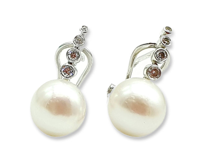 Pendientes tipo dormilón, con diamantes talla brillante garra redonda