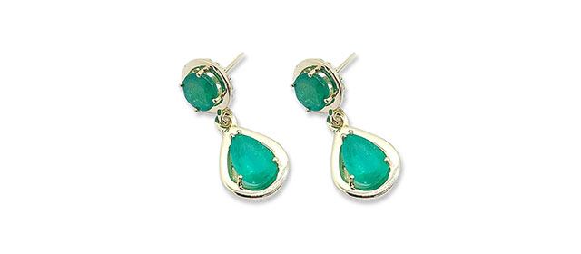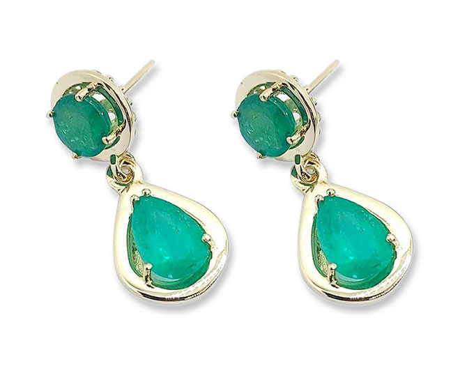 Pendientes con berilo esmeralda, talla redonda y talla pera